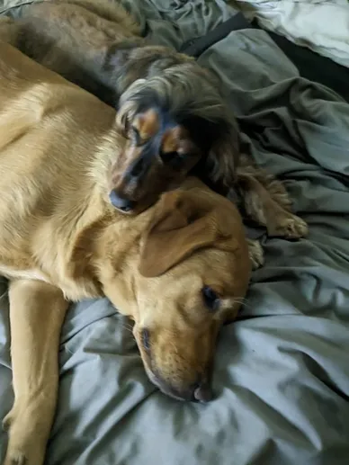 Our guest dogs love coming for sleepovers! They stay in our rooms and on our beds, or in one of the many comfy pet beds which we provide.